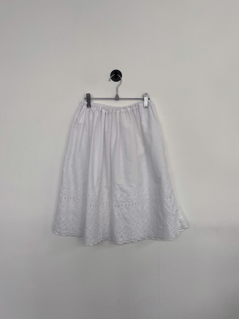 부드러운 터치감의 순면 원단이 사용된 플레어 실루엣 스커트 제품입니다.