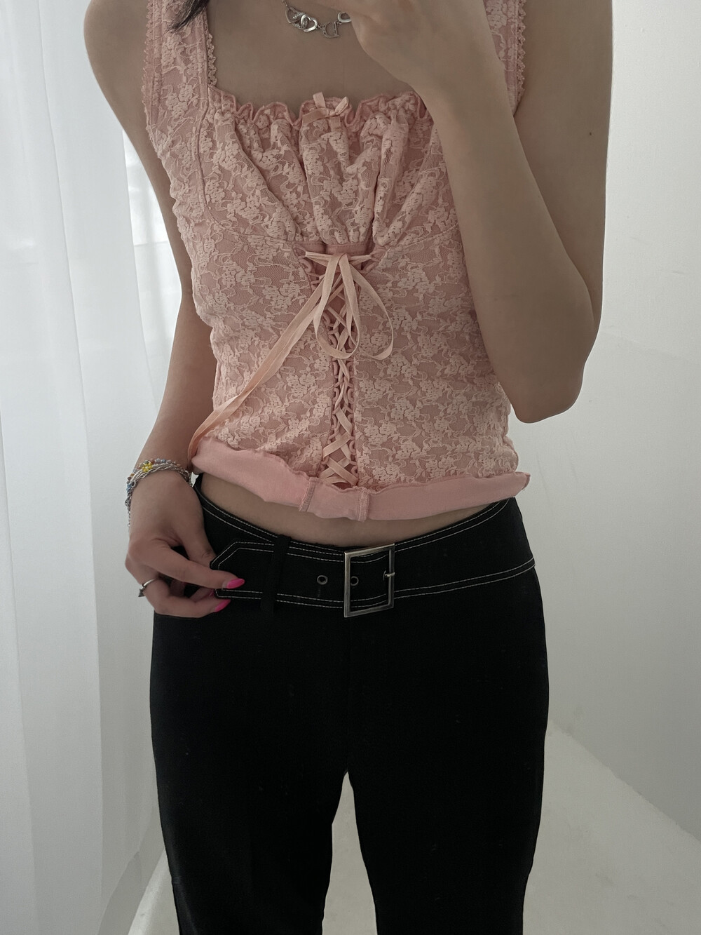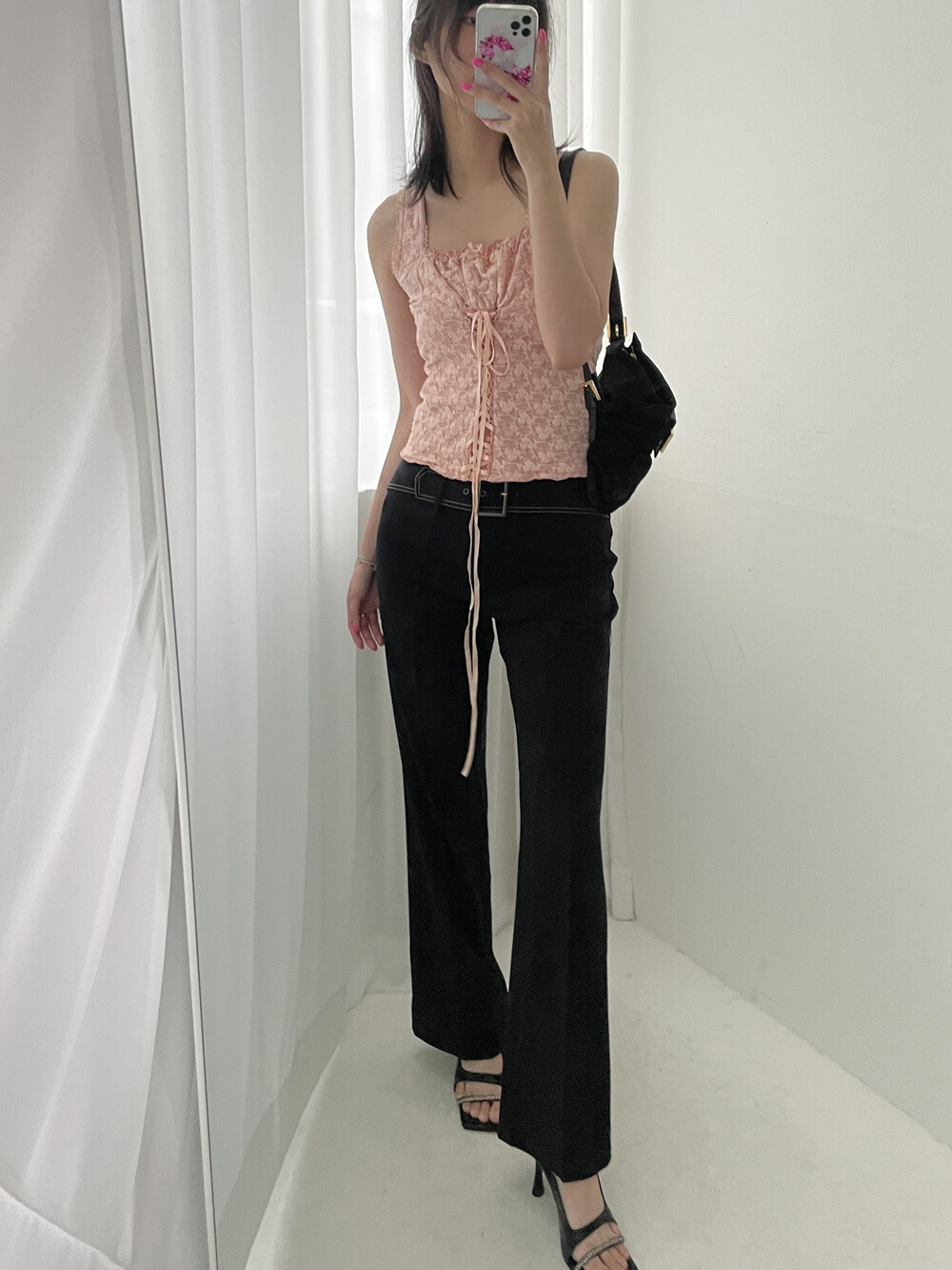 Belted lowrise slacks