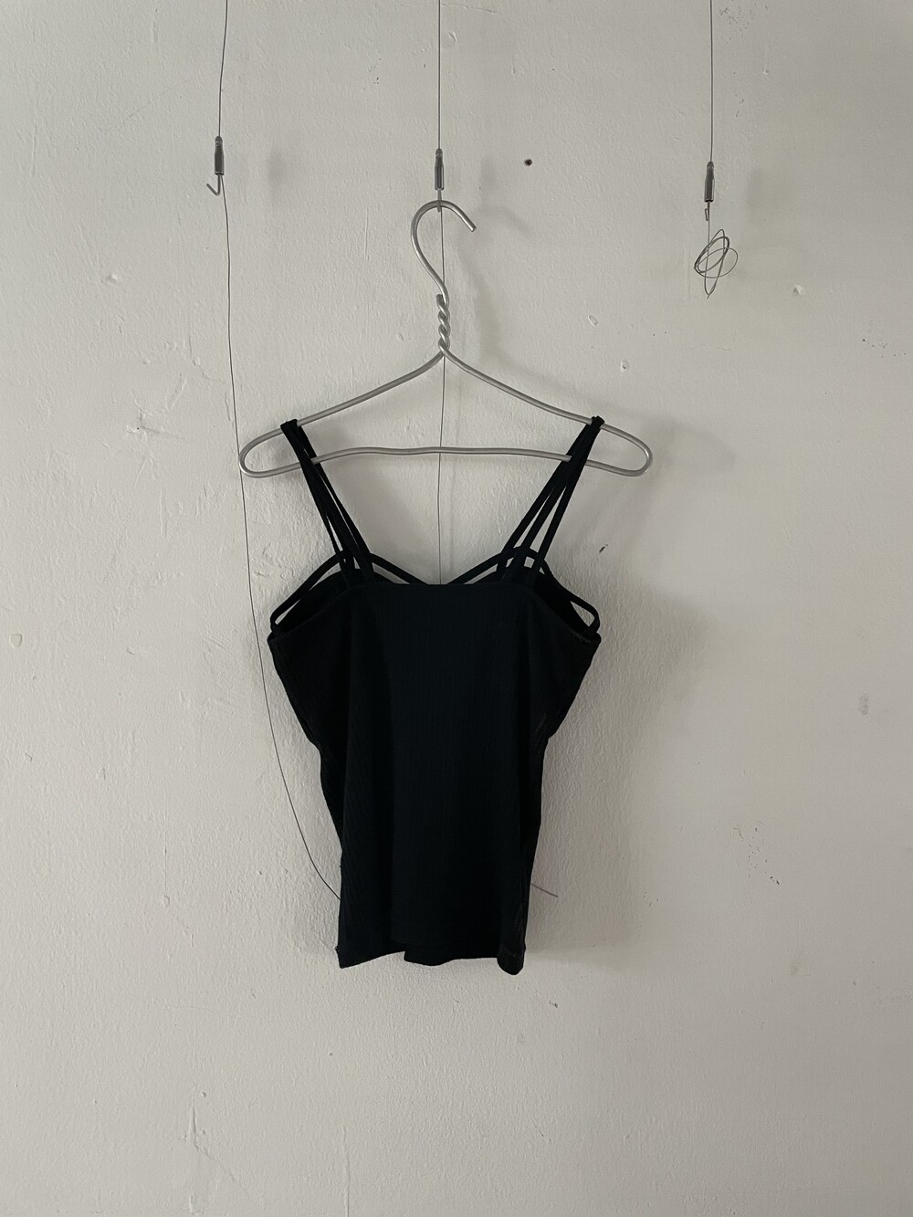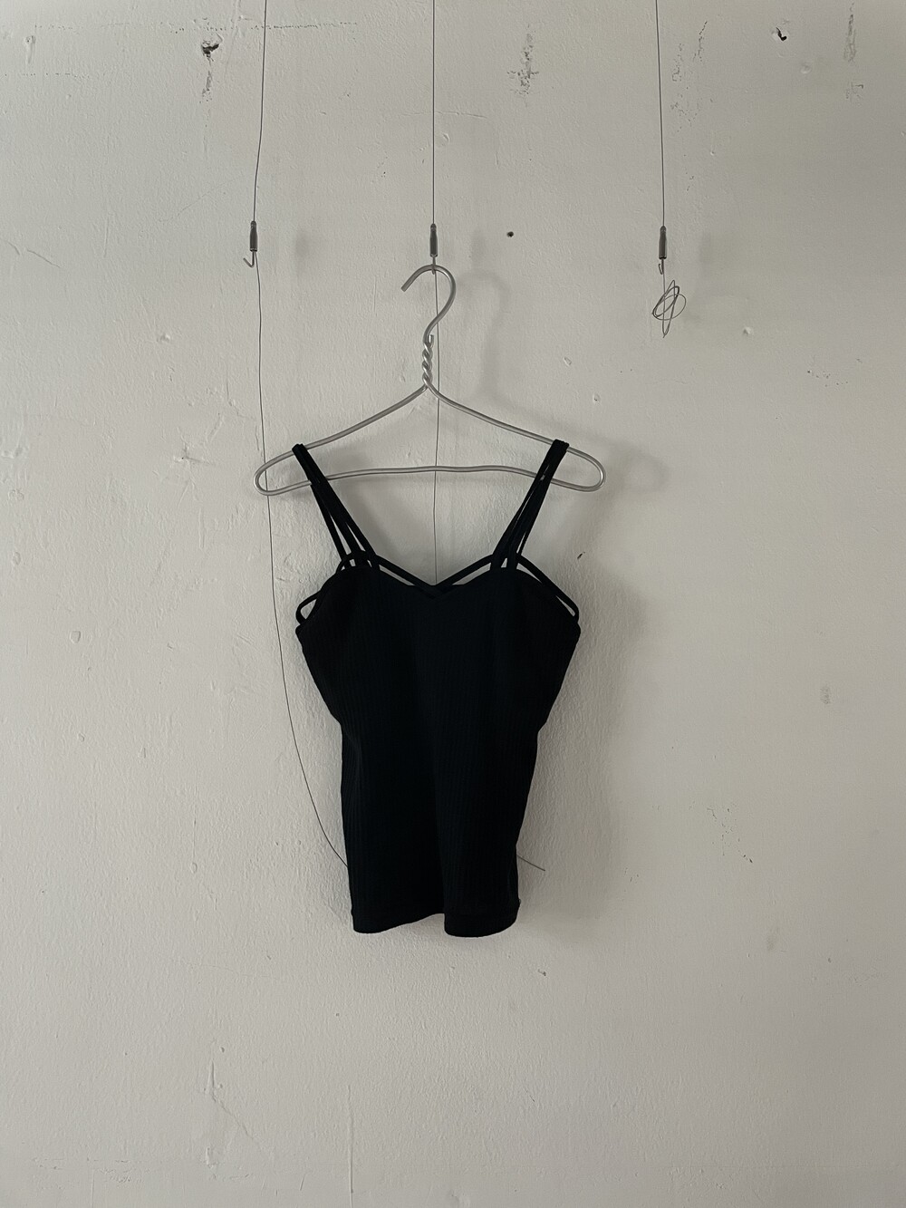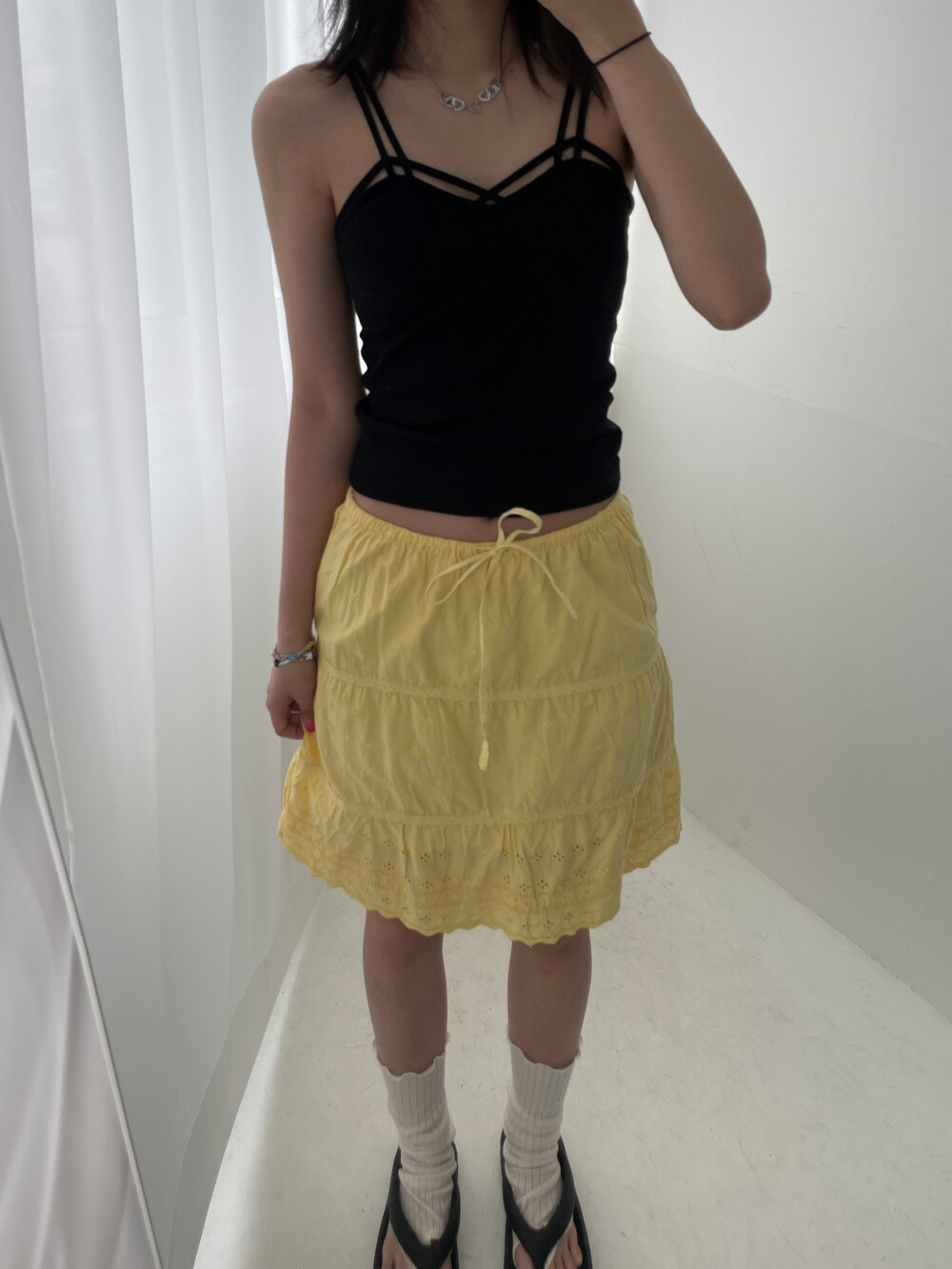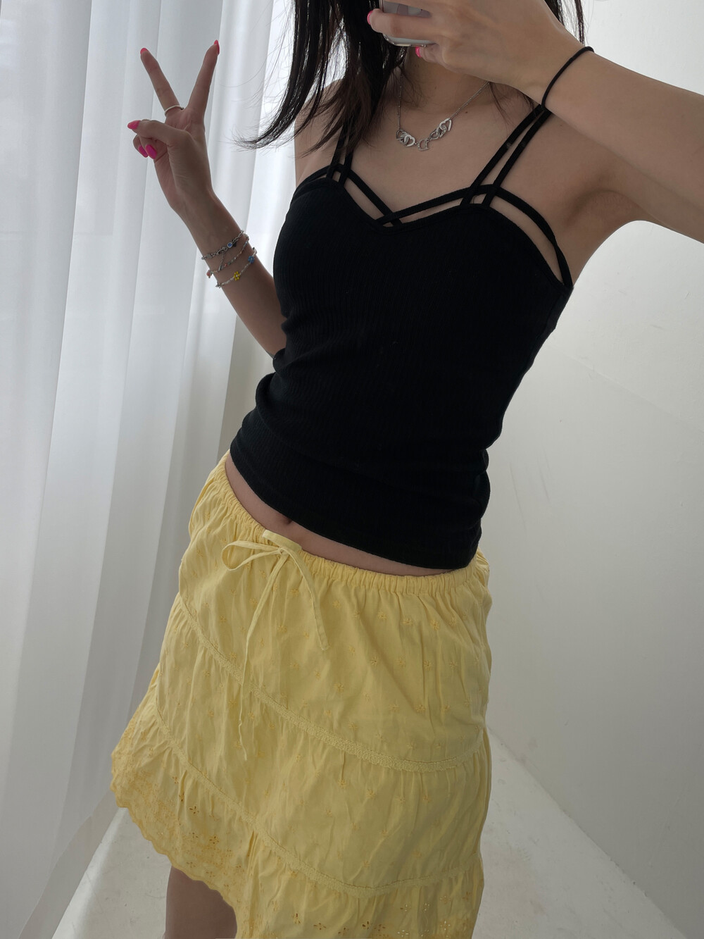 더블 라인 트리밍으로 유니크한 슬리브리스 탑